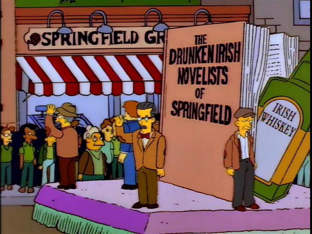 Aww link got busted but it was supposed to be "The Drunken Irish Novelists of Springfield"